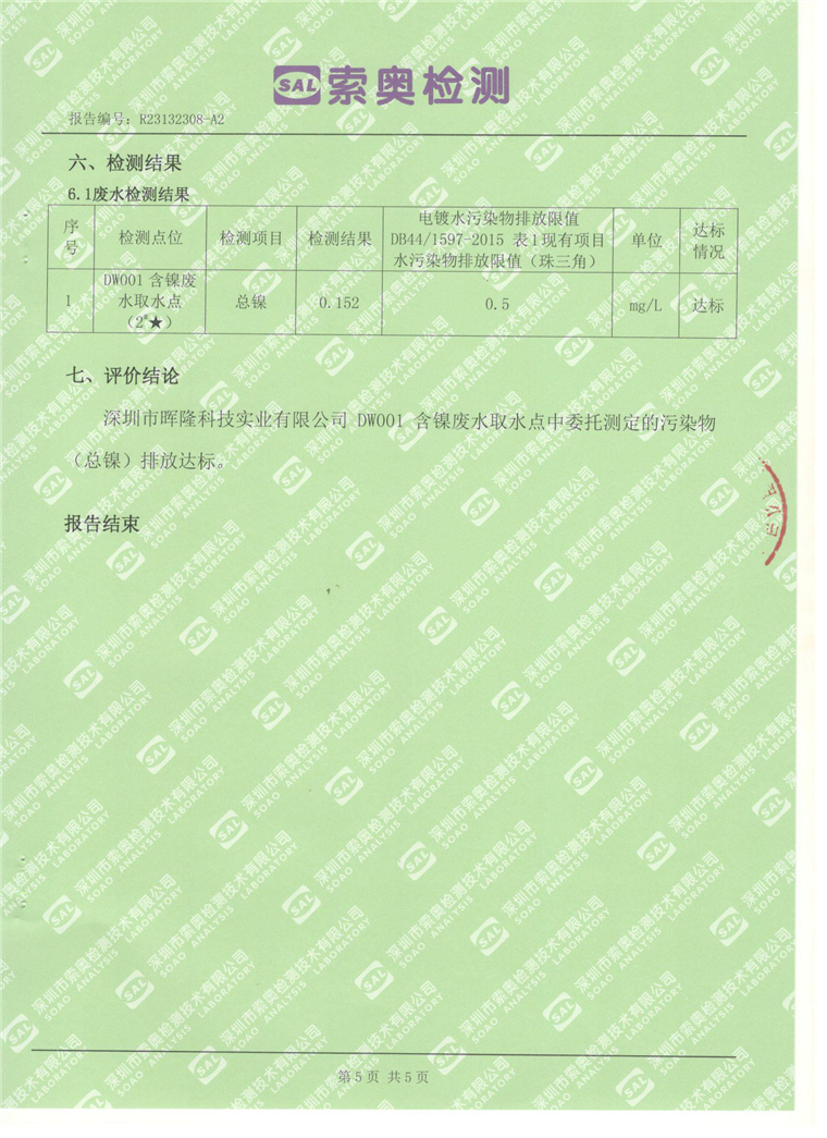 2023年5月廢水檢測結果
